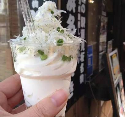 远州滩产的小鳀鱼加上葱花,日本静冈县的当地特色冰淇淋。