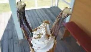 让 人眼前一亮的柳叶鱼倒插在冰淇淋上的冰淇淋。你还可以随意选择柳叶鱼的性别、数量,唯一的规定就是最后一定是要柳叶鱼本人倒插在冰淇淋上,不可以是鳝鱼、鳗鱼、带鱼等。