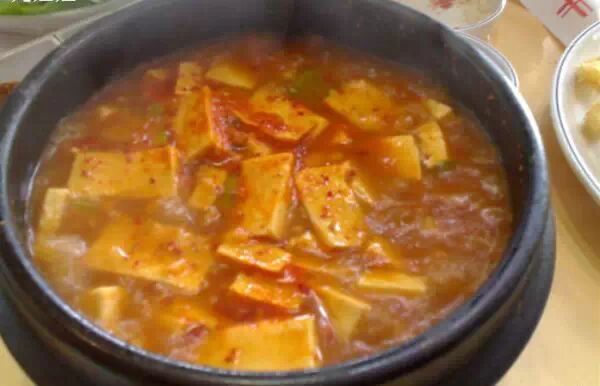 大酱汤,大酱汤是韩国餐桌上最为常见的一种韩国汤类。用韩国特有的大酱炖煮而成,里面加入了豆腐,菜瓜,蘑菇,辣酱,洋葱等蔬菜。韩国人尤其喜欢在汤炖煮熟的时候,加上一些青阳辣椒,味道鲜美。
