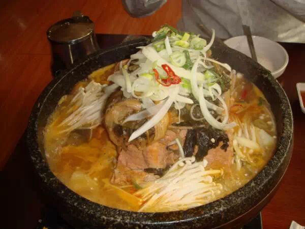 土豆排骨汤,韩国的很多汤类都非常符合中国人的口味,这道土豆排骨汤也是其中之一。加入足量的大排骨,土豆,蔬菜炖煮而成。很多店家为了让排骨入味,会事先炖煮很长时间。味道浓郁成为受到中国游客欢迎的韩国美食之一。