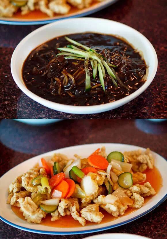 韩式炸酱面+糖醋肉,这是让我们中国人非常费解的韩国式中国料理。炸酱面的酱料到面都与我们中国的炸酱面有着非常大的差别。味道却还不错。对于韩国人炸酱面和糖醋肉是最完美的搭配,去韩国旅游,可以入乡随俗的体验一次韩式中国料理,其实还是很好味的。