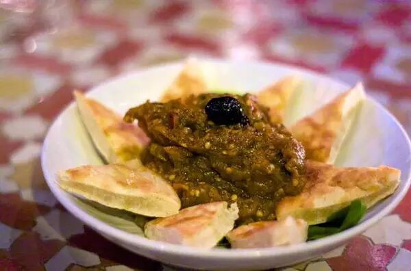路边摊小吃之一,用面包蘸取他们特殊制作的酱料,这些酱料的主要配方就是茄子,辣椒,番茄,大蒜和橄榄油。