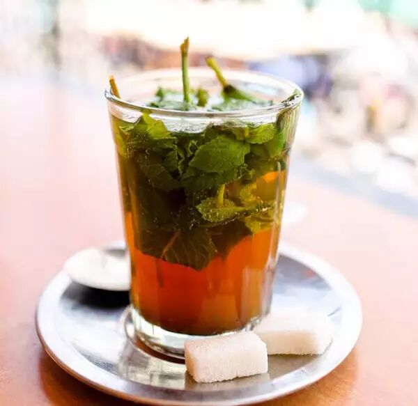 摩洛哥的国茶,当地人一年四季都会喝,还自豪地把薄荷茶称为“摩洛哥威士忌”,事实上,摩洛哥的喝茶历史从19世纪就延续至今了。喝薄荷茶时需要耐心地等待,因为喝之前会有相应的敬茶礼仪。薄荷茶可以归为绿茶,除了薄荷叶,还要加入糖和绿茶水。泡茶的手法很有意思:用热水冲泡绿茶后,将茶叶滤出,再放入新鲜的薄荷叶,将银质茶壶高高举起,茶水冲进玻璃杯里要泛起大量的白色泡沫才好。冲好的茶水兼具绿茶和薄荷的清香,味甜爽口,此外,还会常常加入玫瑰、丁香、茉莉等其他香料,增加口感的丰富。