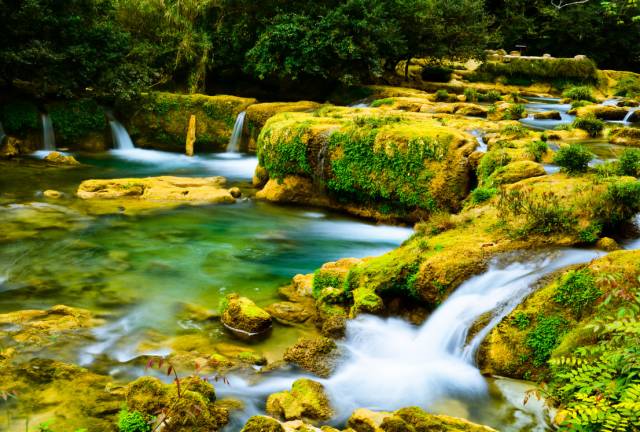 风景优美的小七孔,集洞、林、湖、瀑、石、水多种景观于一体,是一处不可多得的休闲胜地。